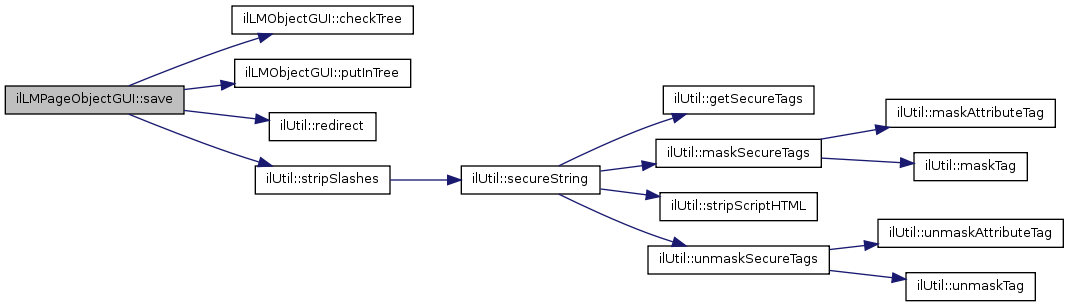 Here is the call graph for this function:| ilLMPageObjectGUI::save | ( | ) |