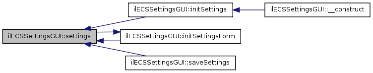 Here is the call graph for this function:| ilECSSettingsGUI::settings | ( | ) | [protected] |