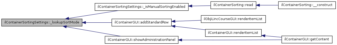 Here is the caller graph for this function:| ilContainerSortingSettings::getSortMode | ( | ) |