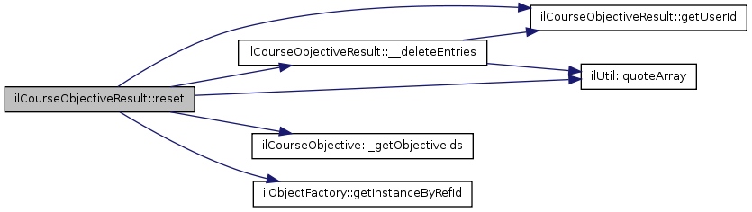 Here is the call graph for this function:| ilCourseObjectiveResult::reset | ( | $ | a_course_id | ) |