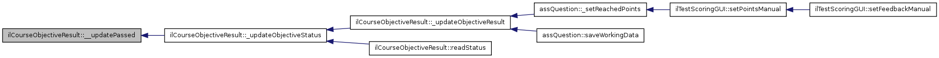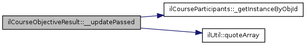 Here is the caller graph for this function:| ilCourseObjectiveResult::__updatePassed | ( | $ | a_user_id, | |
