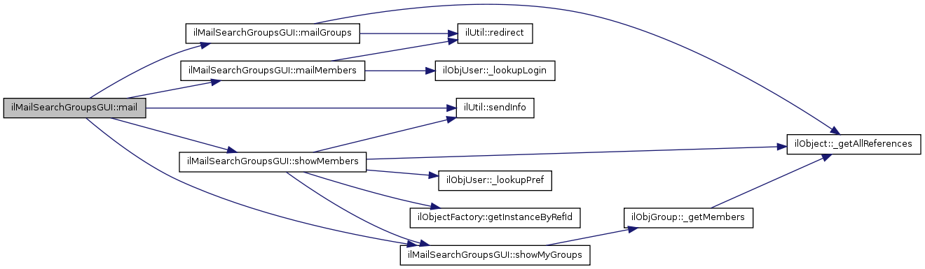 Here is the call graph for this function:| ilMailSearchGroupsGUI::mailGroups | ( | ) |
