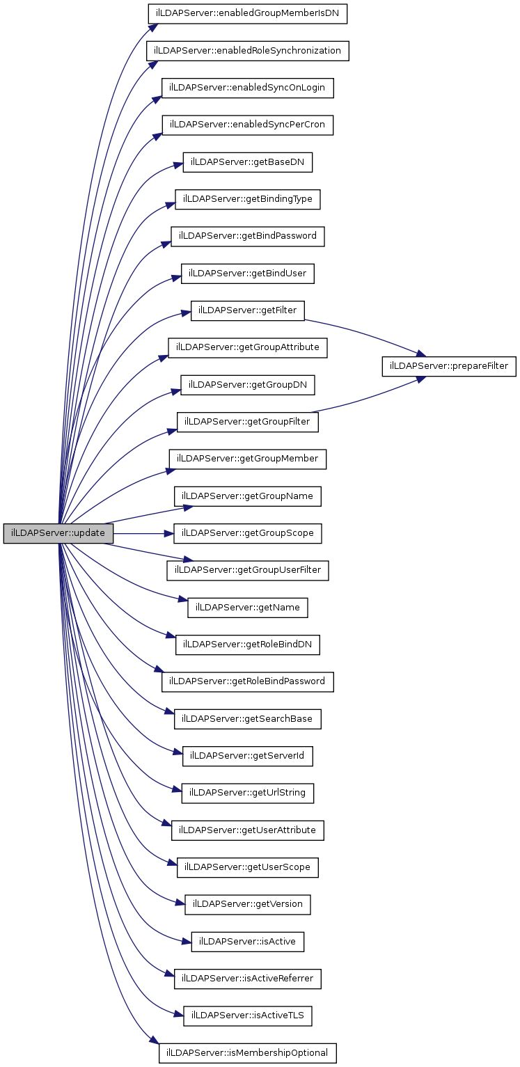Here is the call graph for this function:| ilLDAPServer::update | ( | ) |