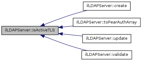 Here is the caller graph for this function:| ilLDAPServer::toggleTLS | ( | $ | a_status | ) |