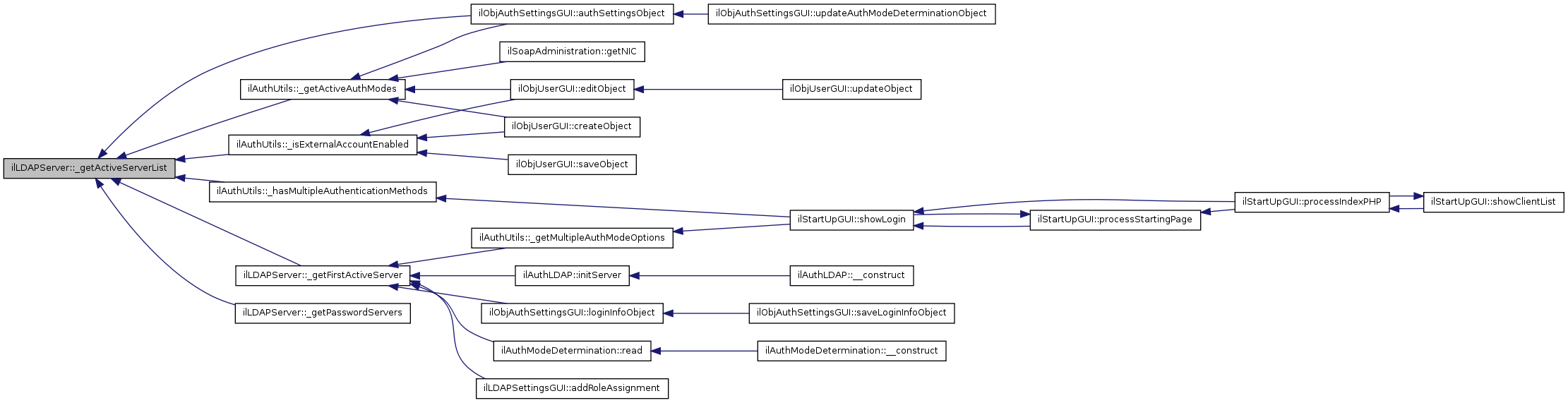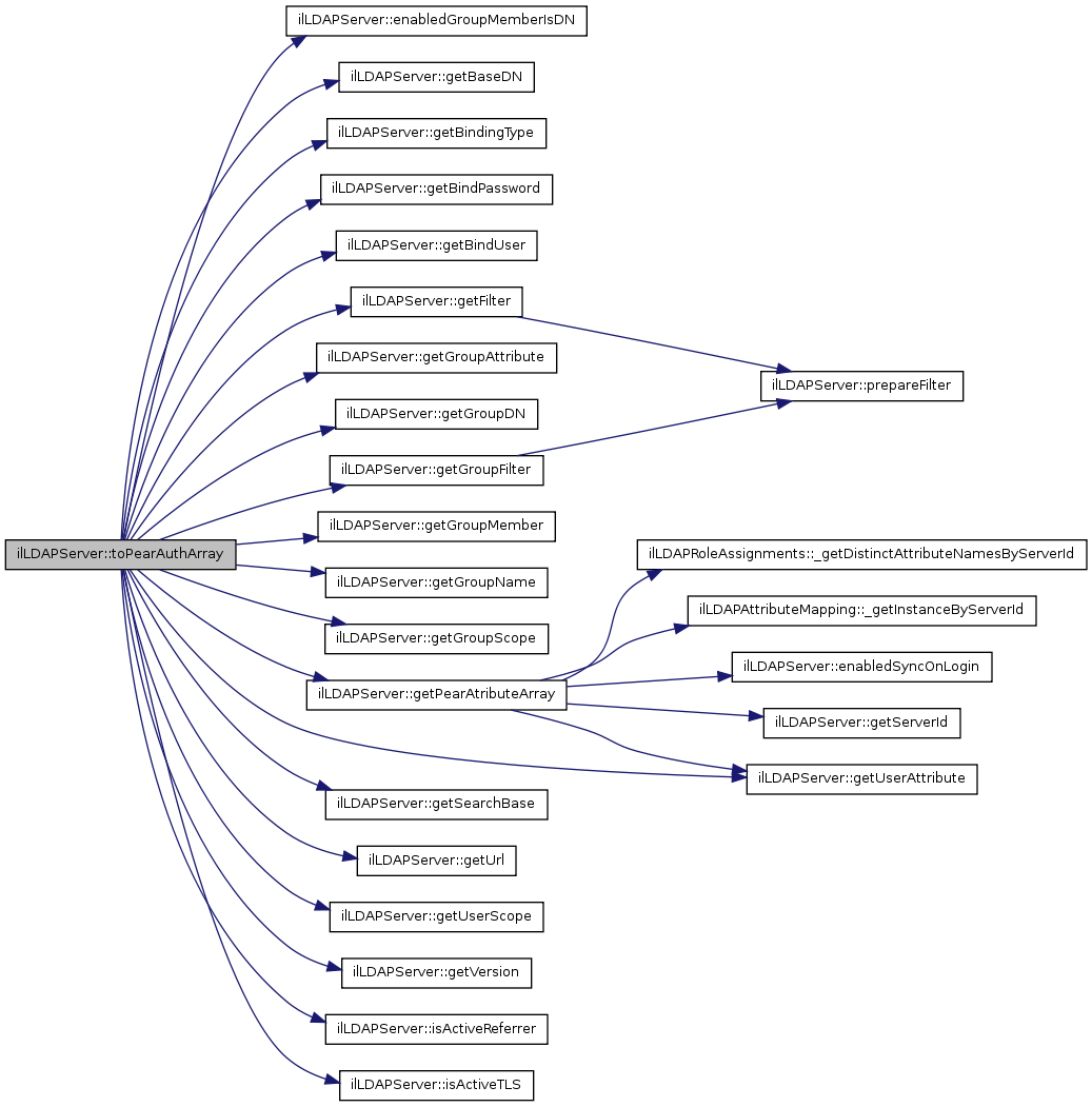 Here is the caller graph for this function:| ilLDAPServer::toPearAuthArray | ( | ) |