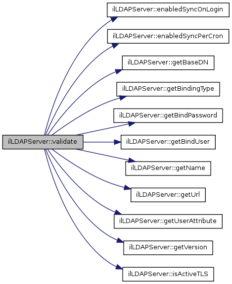 Here is the call graph for this function:| ilLDAPServer::validate | ( | ) |