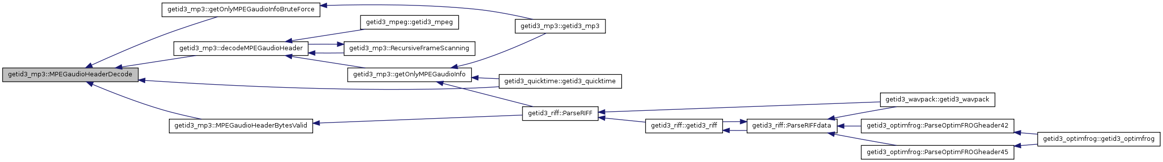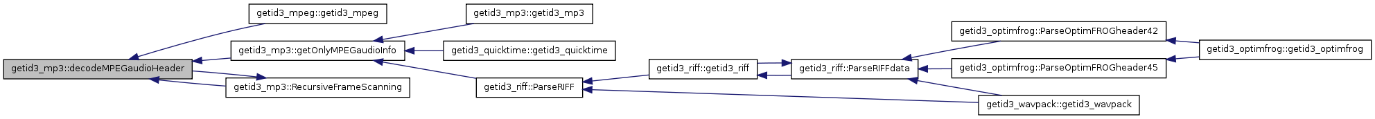 Here is the caller graph for this function:| getid3_mp3::decodeMPEGaudioHeader | ( | $ | fd, | |