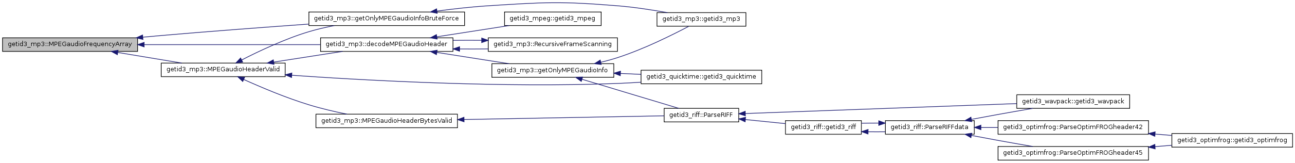 References MPEGaudioBitrateArray(), MPEGaudioChannelModeArray(), MPEGaudioEmphasisArray(), MPEGaudioFrequencyArray(), MPEGaudioLayerArray(), MPEGaudioModeExtensionArray(), and MPEGaudioVersionArray().