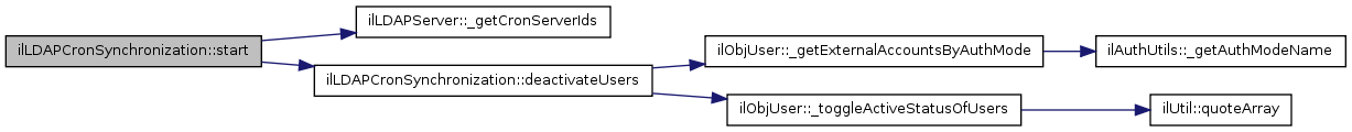 Here is the caller graph for this function:| ilLDAPCronSynchronization::start | ( | ) |
