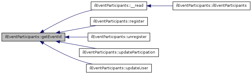 Here is the caller graph for this function:| ilEventParticipants::getEventId | ( | ) |