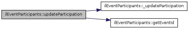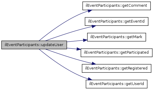 Here is the call graph for this function:| ilEventParticipants::updateUser | ( | ) |