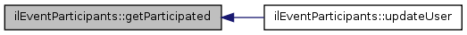 Here is the caller graph for this function:| ilEventParticipants::_getParticipated | ( | $ | a_event_id | ) |
