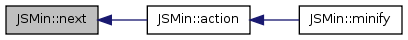 Here is the call graph for this function:| JSMin::next | ( | ) |
