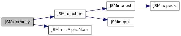 Here is the caller graph for this function:| JSMin::minify | ( | ) |