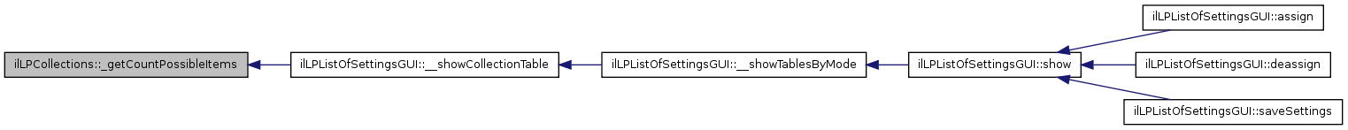 Here is the caller graph for this function:| ilLPCollections::_getCountPossibleItems | ( | $ | a_target_id | ) |