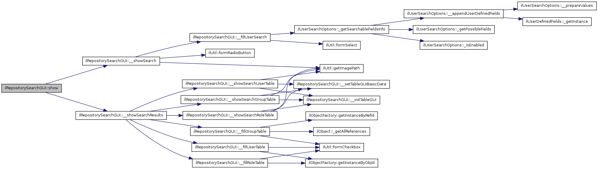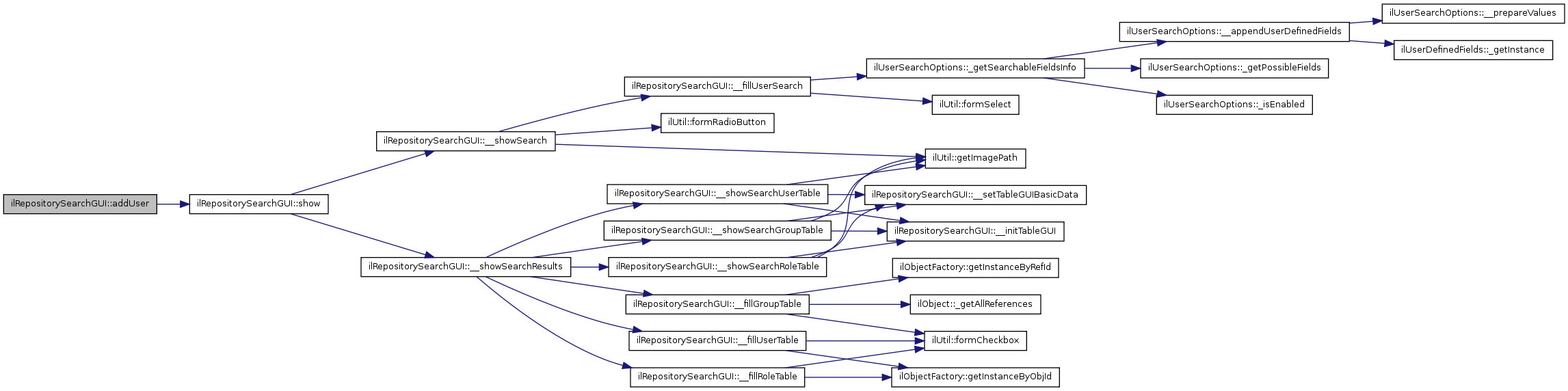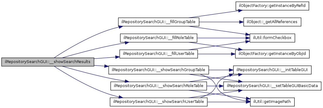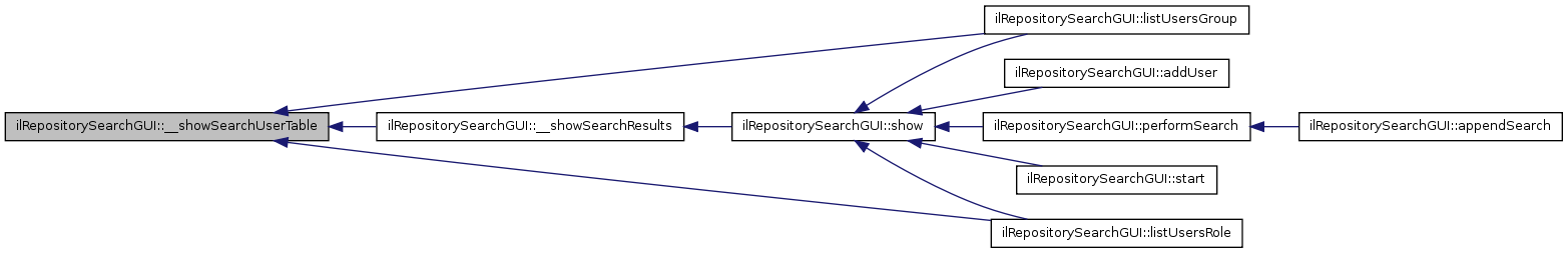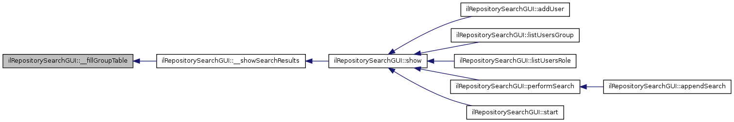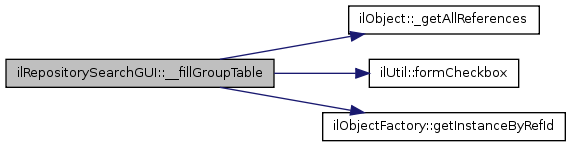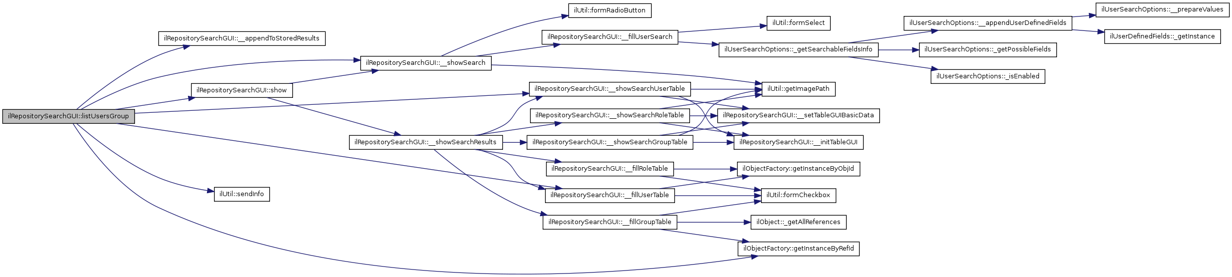 Here is the call graph for this function:| ilRepositorySearchGUI::listUsersGroup | ( | ) |