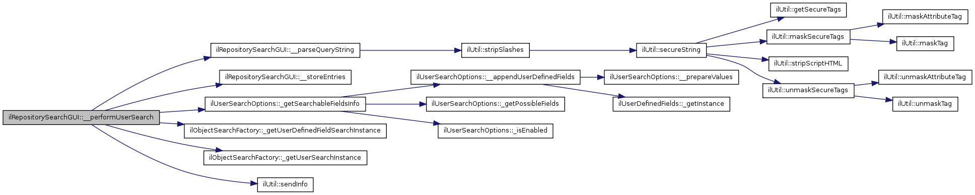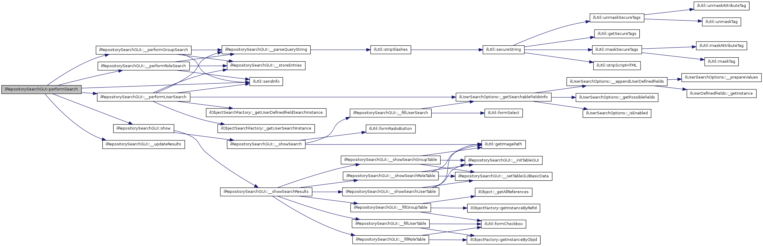 Here is the call graph for this function:| ilRepositorySearchGUI::performSearch | ( | ) |