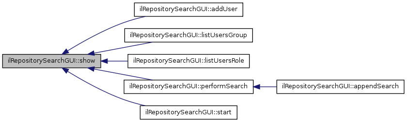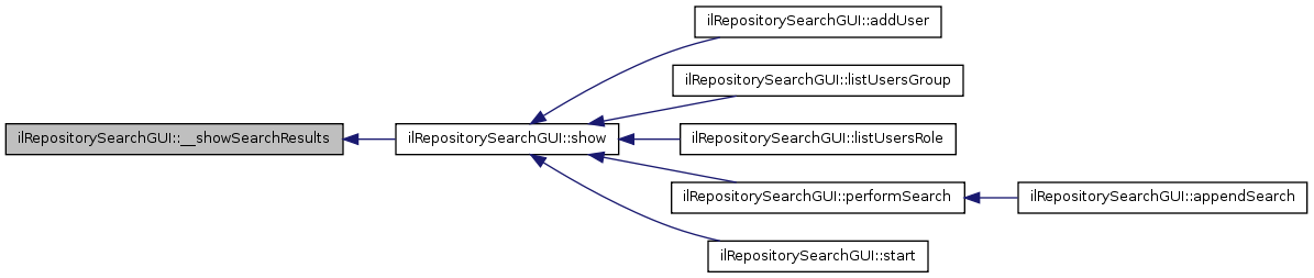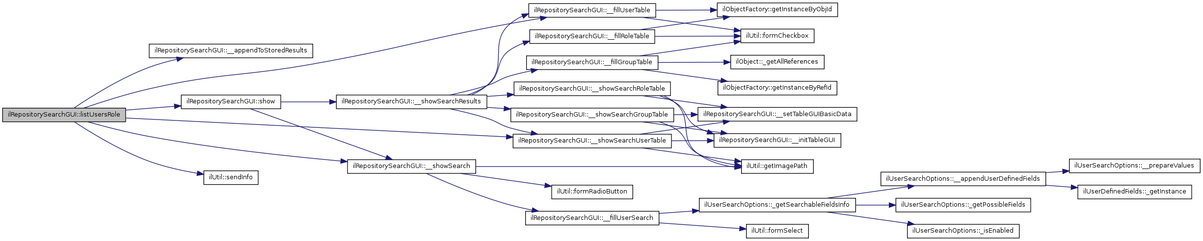 Here is the call graph for this function:| ilRepositorySearchGUI::listUsersRole | ( | ) |
