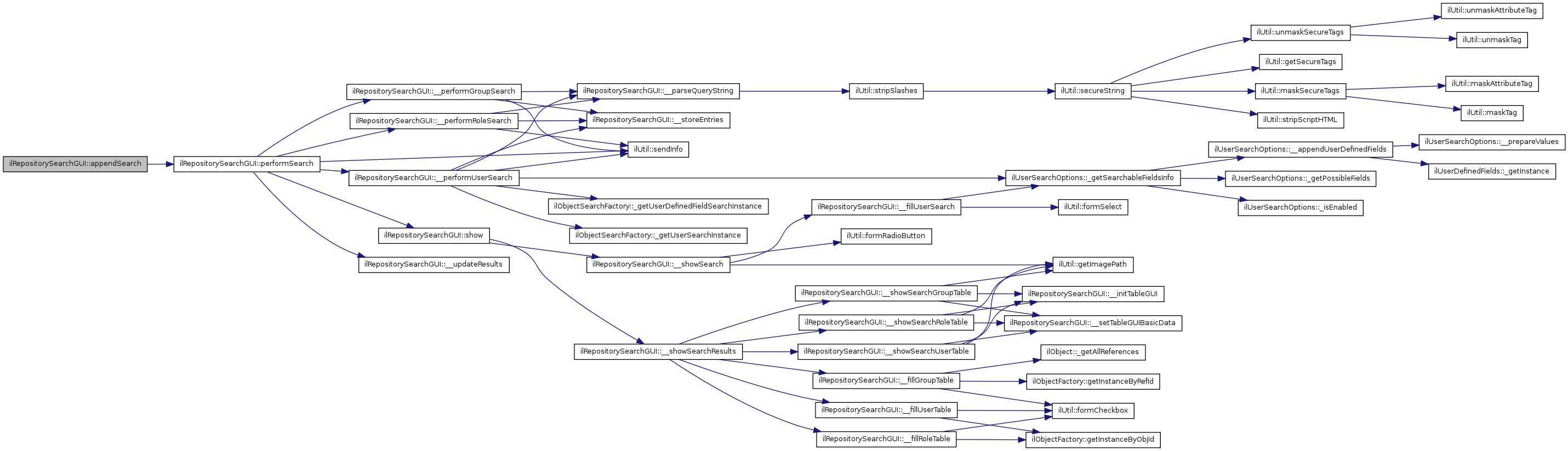 Here is the call graph for this function:| ilRepositorySearchGUI::appendSearch | ( | ) |