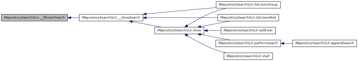 Here is the caller graph for this function:| ilRepositorySearchGUI::__fillUserSearch | ( | ) |