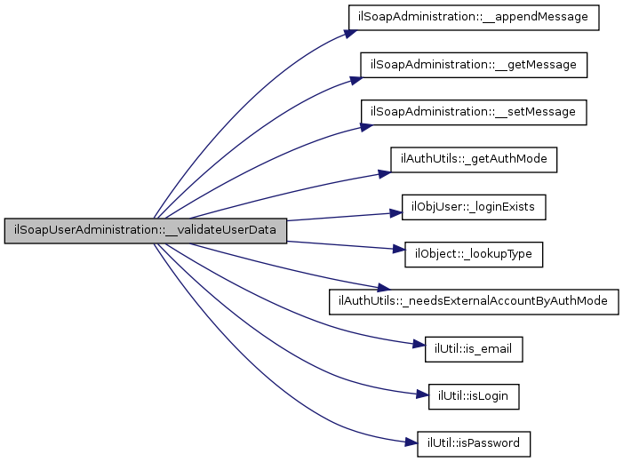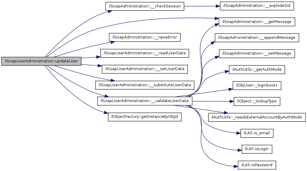References $log, ilSoapAdministration::__checkSession(), ilSoapAdministration::__getMessage(), ilSoapAdministration::__raiseError(), __readUserData(), __setUserData(), __substituteUserData(), __validateUserData(), and ilObjectFactory::getInstanceByObjId().
