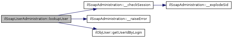 Here is the call graph for this function:| ilSoapUserAdministration::lookupUser | ( | $ | sid, | |