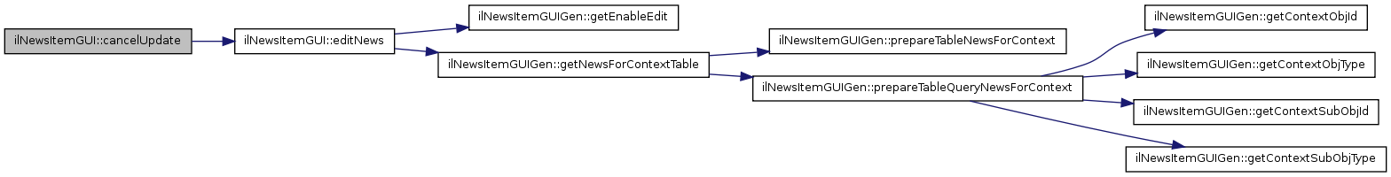 Here is the call graph for this function:| ilNewsItemGUI::cancelUpdateNewsItem | ( | ) |