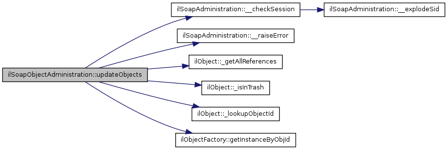 Here is the call graph for this function:| ilSoapObjectAdministration::updateObjects | ( | $ | sid, | |