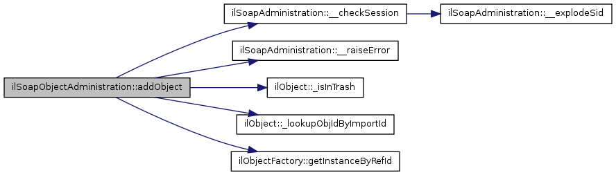 Here is the call graph for this function:| ilSoapObjectAdministration::addReference | ( | $ | sid, | |