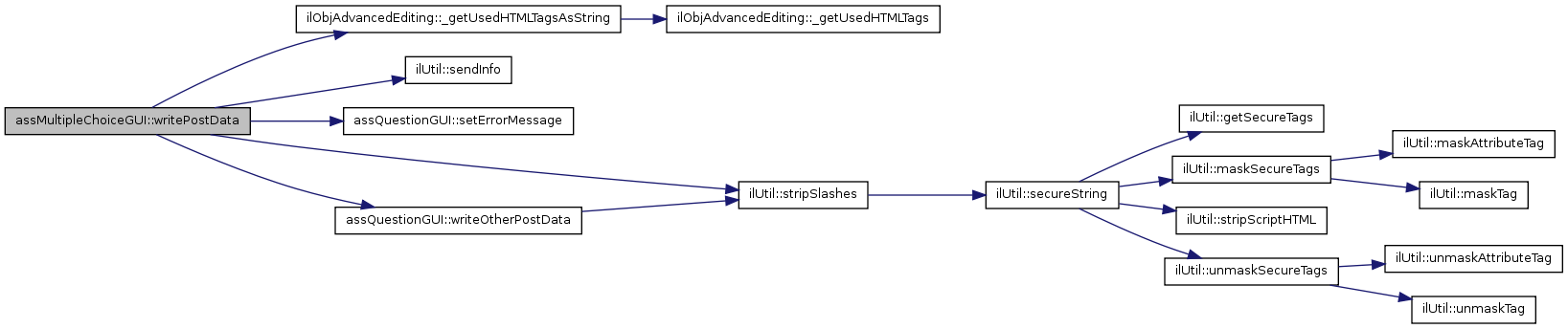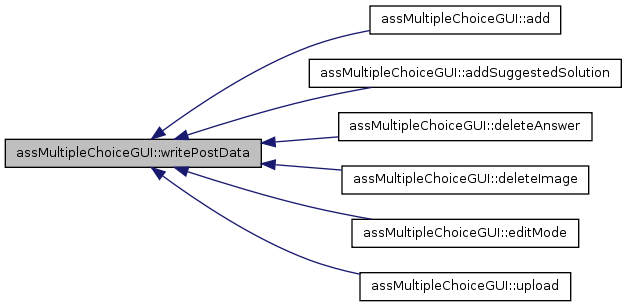 Here is the call graph for this function:| assMultipleChoiceGUI::writePostData | ( | ) |
