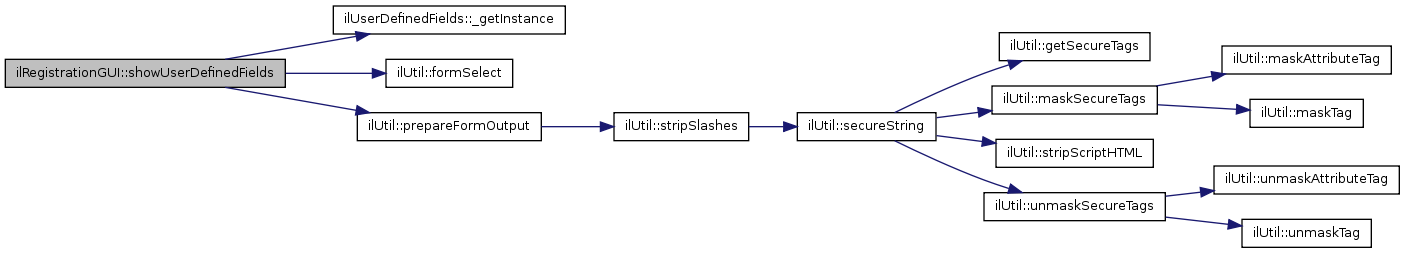 Here is the call graph for this function:| ilRegistrationGUI::showUserDefinedFields | ( | ) |