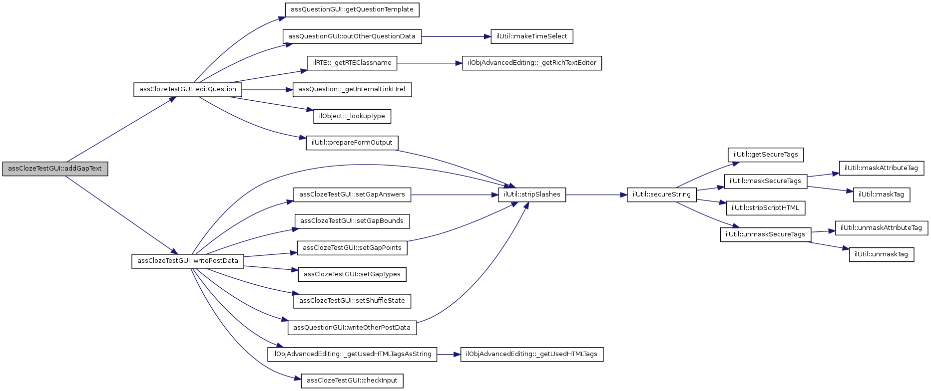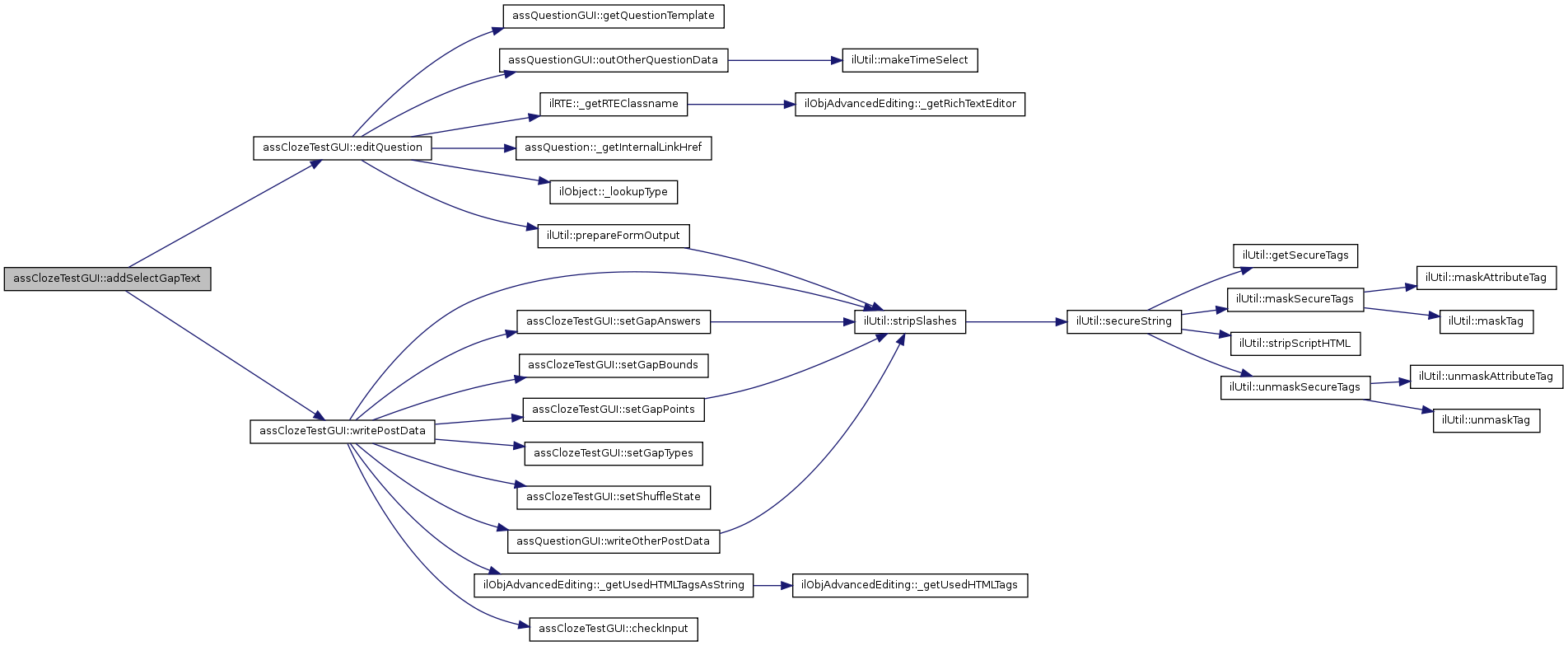 Here is the call graph for this function:| assClozeTestGUI::addSelectGapText | ( | ) |
