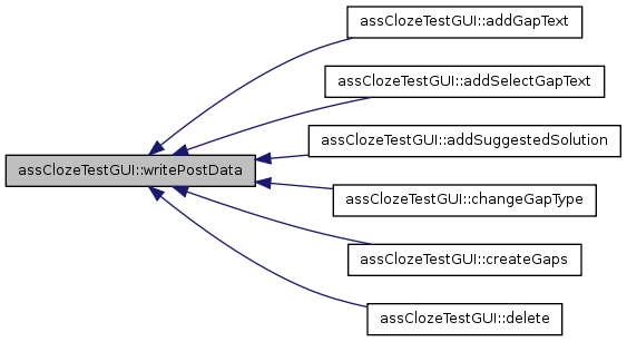 Here is the caller graph for this function:| assClozeTestGUI::writePostData | ( | ) |
