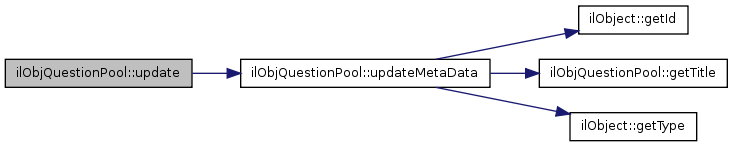 Here is the call graph for this function:| ilObjQuestionPool::updateMetaData | ( | ) |