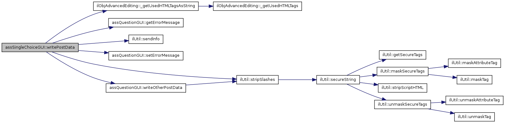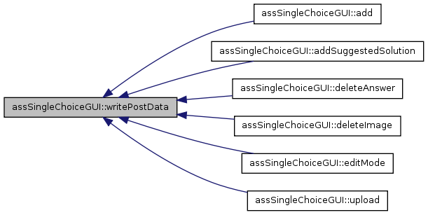 Here is the call graph for this function:| assSingleChoiceGUI::writePostData | ( | ) |