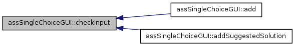 Here is the call graph for this function:| assSingleChoiceGUI::checkInput | ( | ) |