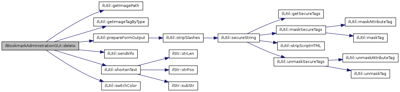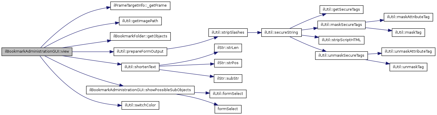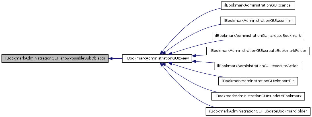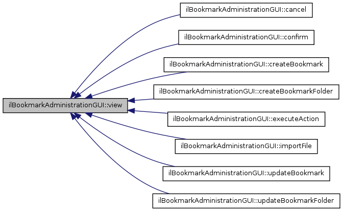 It manages folders and bookmarks with the help of the two corresponding core classes ilBookmarkFolder and ilBookmark. Their methods are called in this User Interface class.