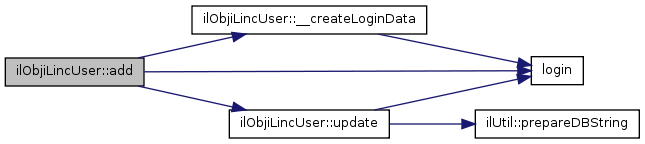 Here is the caller graph for this function:| ilObjiLincUser::add | ( | ) |