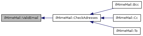 Here is the call graph for this function:| ilMimeMail::ValidEmail | ( | $ | address | ) |