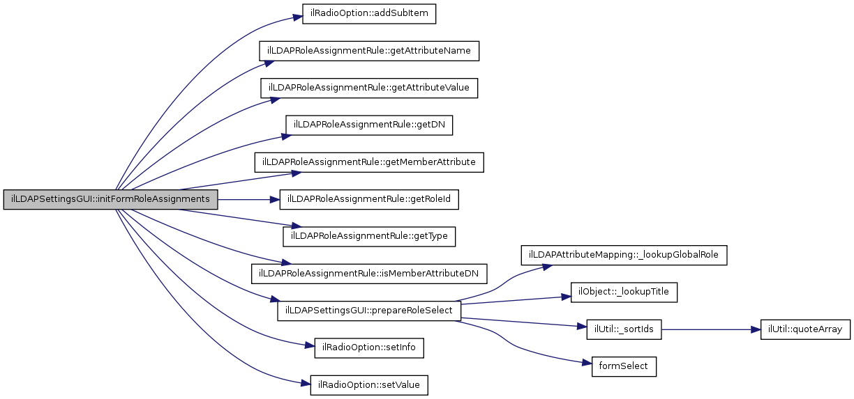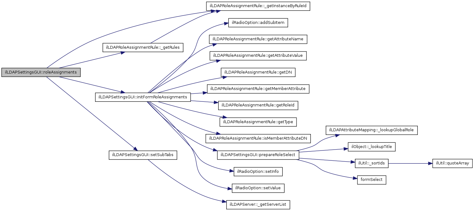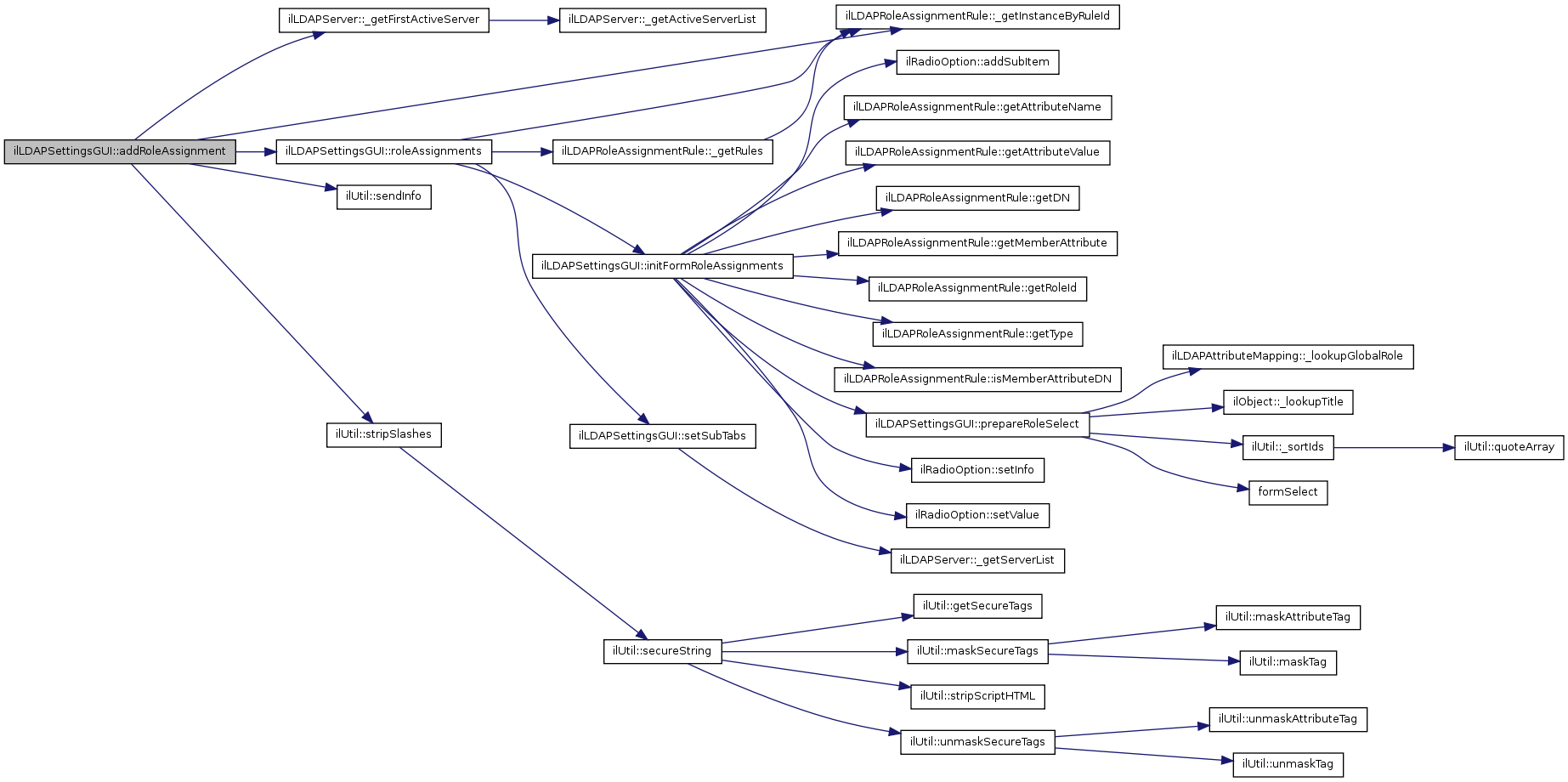 Here is the call graph for this function:| ilLDAPSettingsGUI::addRoleAssignment | ( | ) |