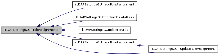 Here is the caller graph for this function:| ilLDAPSettingsGUI::updateRoleAssignment | ( | ) |