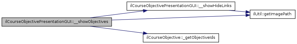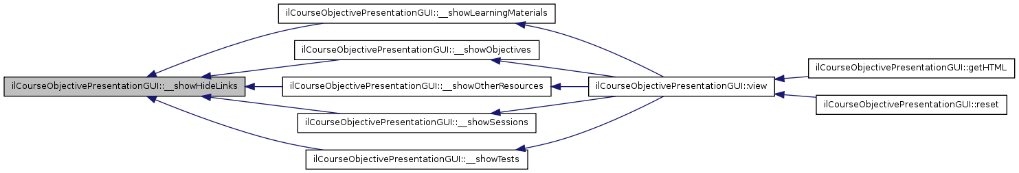 Here is the caller graph for this function:| ilCourseObjectivePresentationGUI::__showHideLinks | ( | $ | a_part | ) |