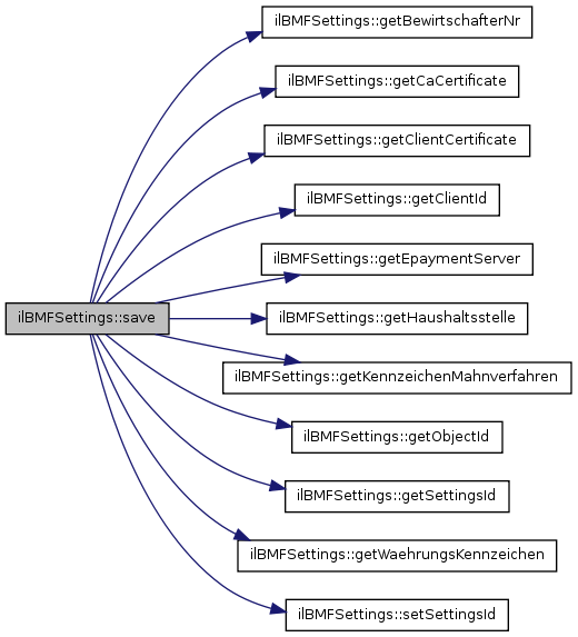 Here is the caller graph for this function:| ilBMFSettings::save | ( | ) |