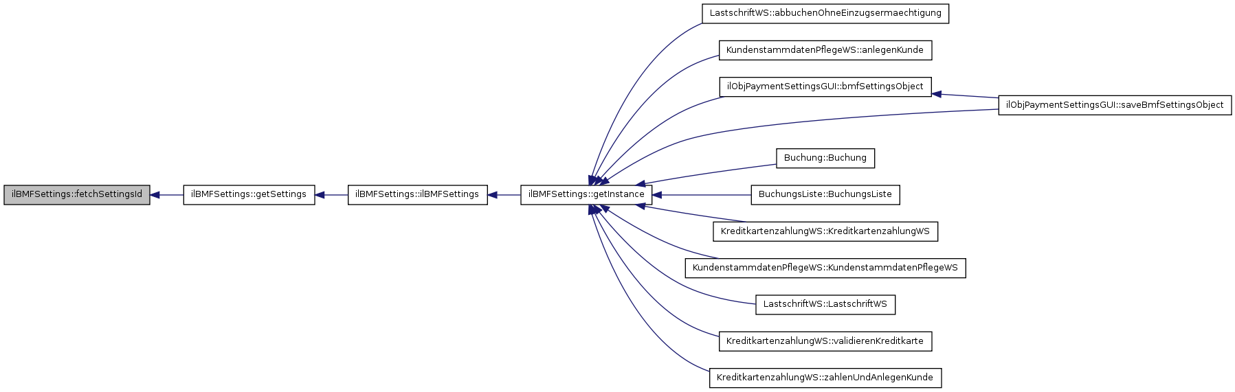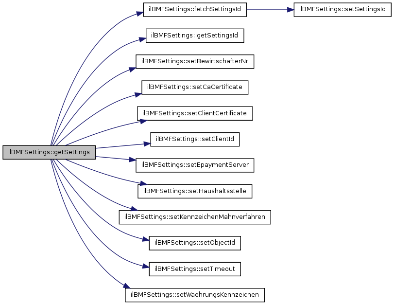 Here is the call graph for this function:| ilBMFSettings::fetchSettingsId | ( | ) | [private] |