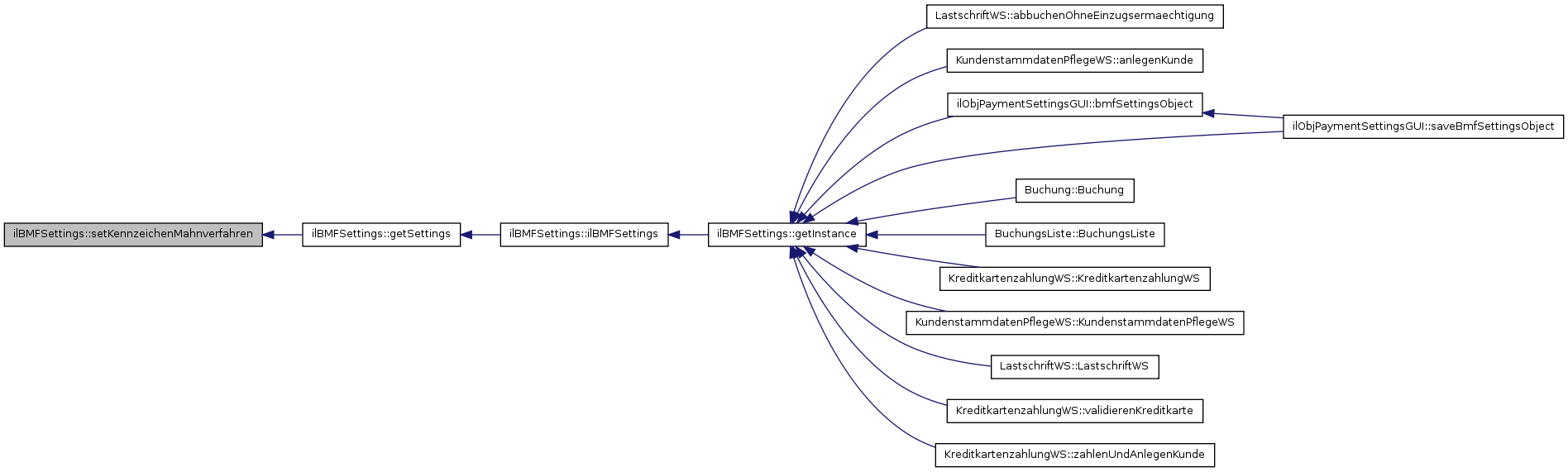 Here is the caller graph for this function:| ilBMFSettings::setKennzeichenMahnverfahren | ( | $ | a_kennzeichen_mahnverfahren | ) |