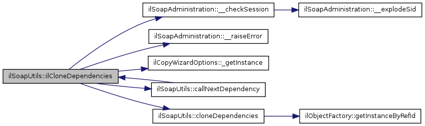 Here is the caller graph for this function:| ilSoapUtils::ilCloneDependencies | ( | $ | sid, | |