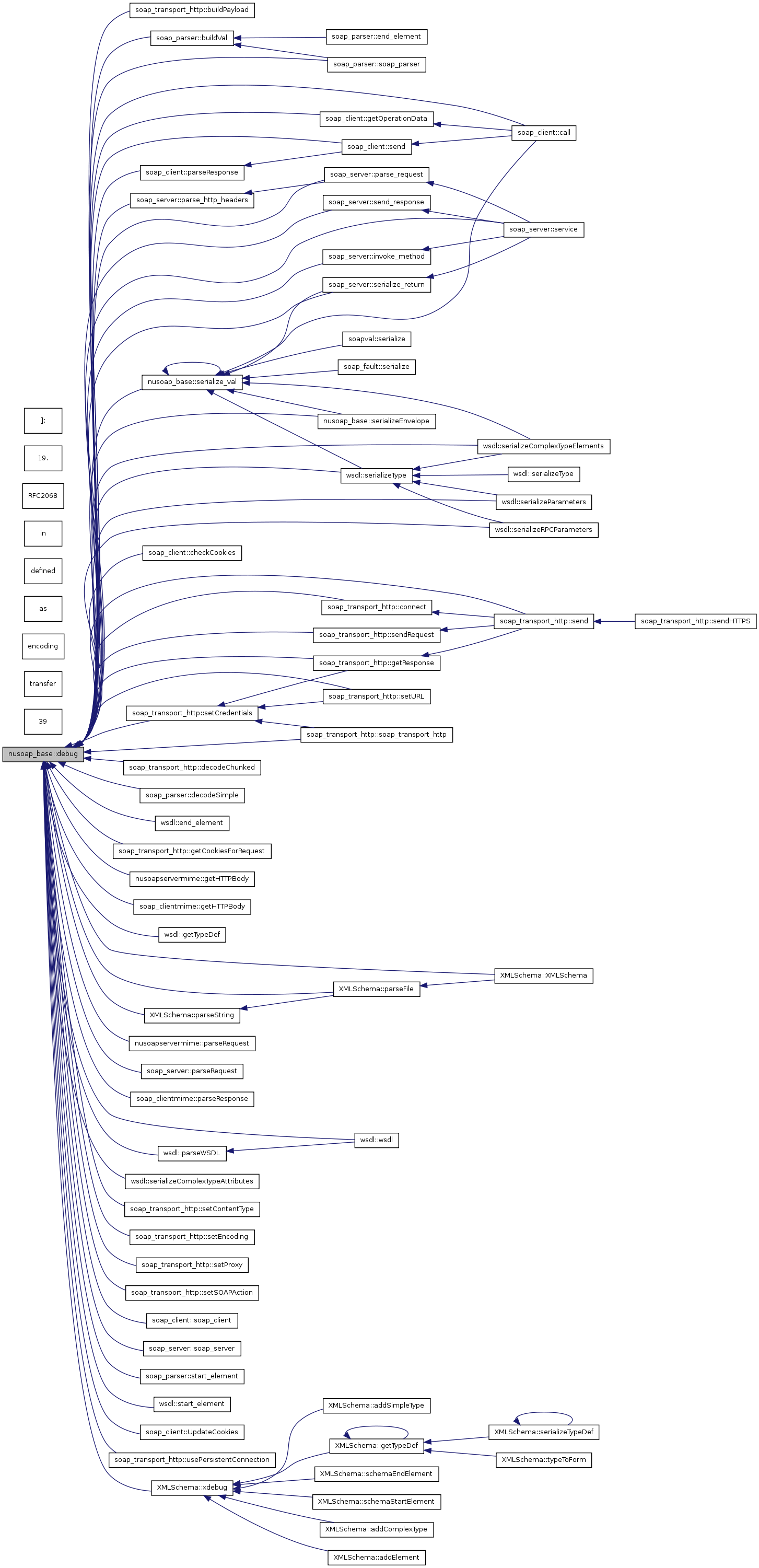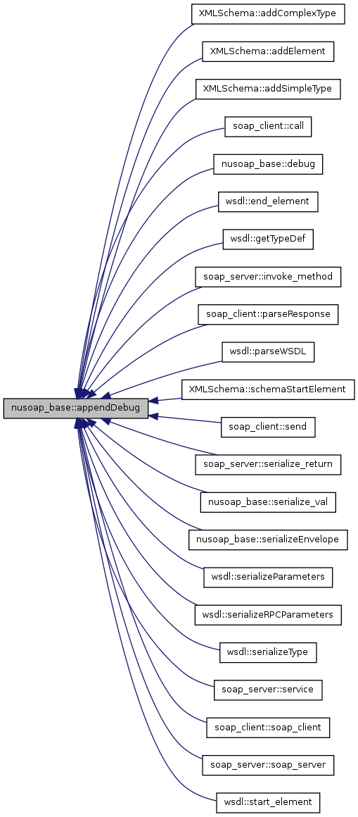 Referenced by XMLSchema::addComplexType(), XMLSchema::addElement(), XMLSchema::addSimpleType(), soap_client::call(), debug(), wsdl::end_element(), wsdl::getTypeDef(), soap_server::invoke_method(), soap_client::parseResponse(), wsdl::parseWSDL(), XMLSchema::schemaStartElement(), soap_client::send(), soap_server::serialize_return(), serialize_val(), serializeEnvelope(), wsdl::serializeParameters(), wsdl::serializeRPCParameters(), wsdl::serializeType(), soap_server::service(), soap_client::soap_client(), soap_server::soap_server(), and wsdl::start_element().