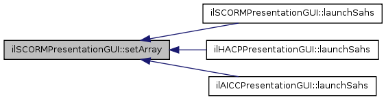 Here is the call graph for this function:| ilSCORMPresentationGUI::setArray | ( | $ | a_left, | |