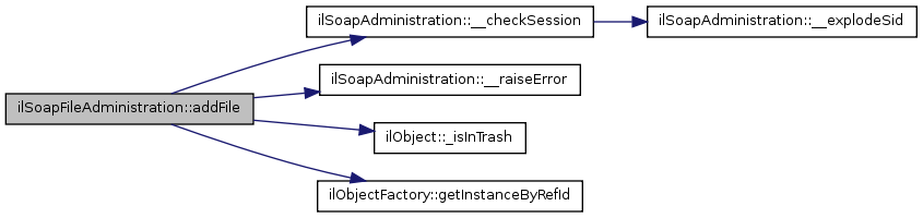 Here is the call graph for this function:| ilSoapFileAdministration::ilSoapFileAdministration | ( | ) |