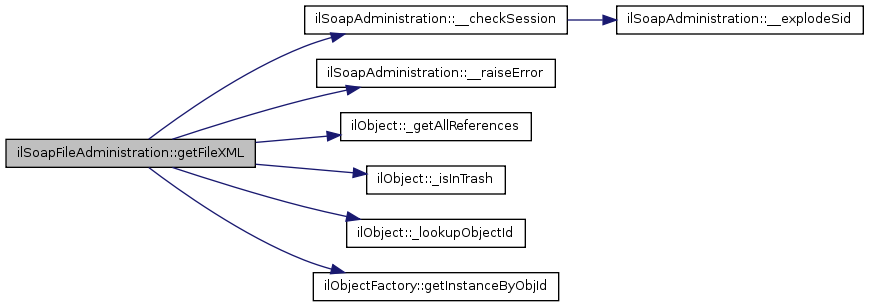 Here is the call graph for this function:| ilSoapFileAdministration::getFileXML | ( | $ | sid, | |